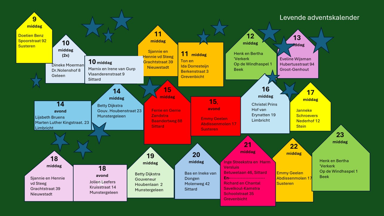 Kent u de adventskalender voor kinderen? Elke dag mag je een deurtje open maken en er komt een chocolaatje tevoorschijn. Dit jaar hebben wij in onze Protestantse Gemeente Maas- en Beekdal geen gewone adventskalender, maar dan een LEVENDE adventskalender.