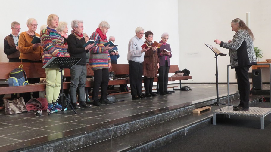 Hoewel de Avondmaalsviering niet doorging, was wel de cantorij aanwezig met vocale ondersteuning, uiteraard ook in dikke truien. Cariene Groen-Zwart begeleidde op orgel en piano.