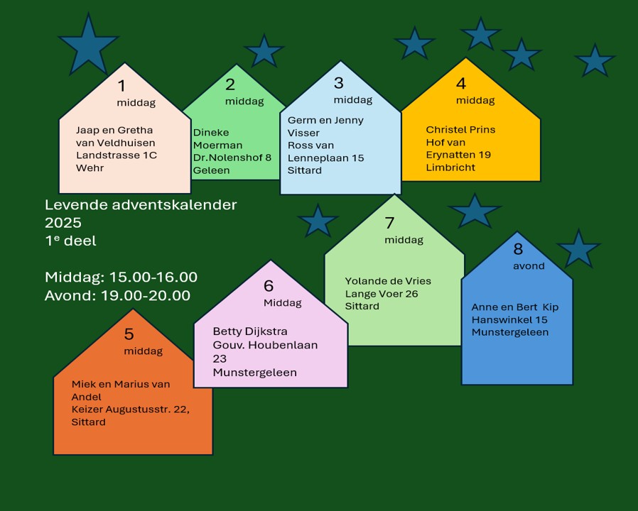 Kent u de adventskalender voor kinderen? Elke dag mag je een deurtje open maken en er komt een chocolaatje tevoorschijn. Dit jaar hebben wij in onze Protestantse Gemeente Maas- en Beekdal geen gewone adventskalender, maar dan een LEVENDE adventskalender.