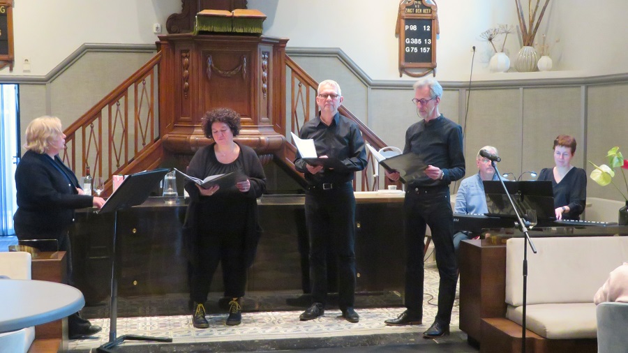 Muzikale medewerking werd deze middag verzorgd door het zangkwartet met Marnix van Gurp, Theo Zwartkruis, Melanie Oort en Rianne Spa, op de piano begeleid door Suzan Welters. De liederen, door Nely uitgezocht, werden enorm gewaardeerd.