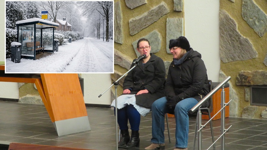 Een engel zijn voor een ander, dat werd voorafgaand ook in de Tweespraak gespeeld door Rosetta Lemmens en Irina Tillema. Ze zaten in de kou te wachten op een bus die niet kwam. De ene dame, mopperend op vreemdelingen, kreeg het steeds kouder. Maar ze kreeg warmte en gastvrijheid aangeboden door de andere dame, een onverwachte engel!