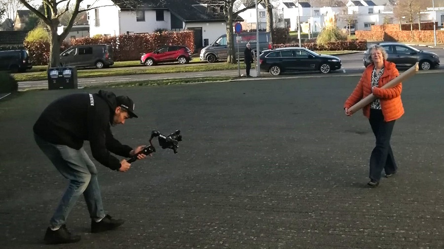 Het maken van de Paaskaarsen is altijd een oecumenische aangelegenheid waarbij de RK parochie Vrangendael en de PG Maas- en Beekdal samenwerken. Voor de programmamakers een interessant gegeven om aandacht aan te besteden. Jan Wetzeler van de parochie Vrangendael maakte het ontwerp voor de kaarsen en mocht uitleggen wat de betekenis is van de afbeelding op de kaarsen. Op de foto is te zien hoe Christel Prins met een grote kaars naar de Johanneskerk toeloopt.