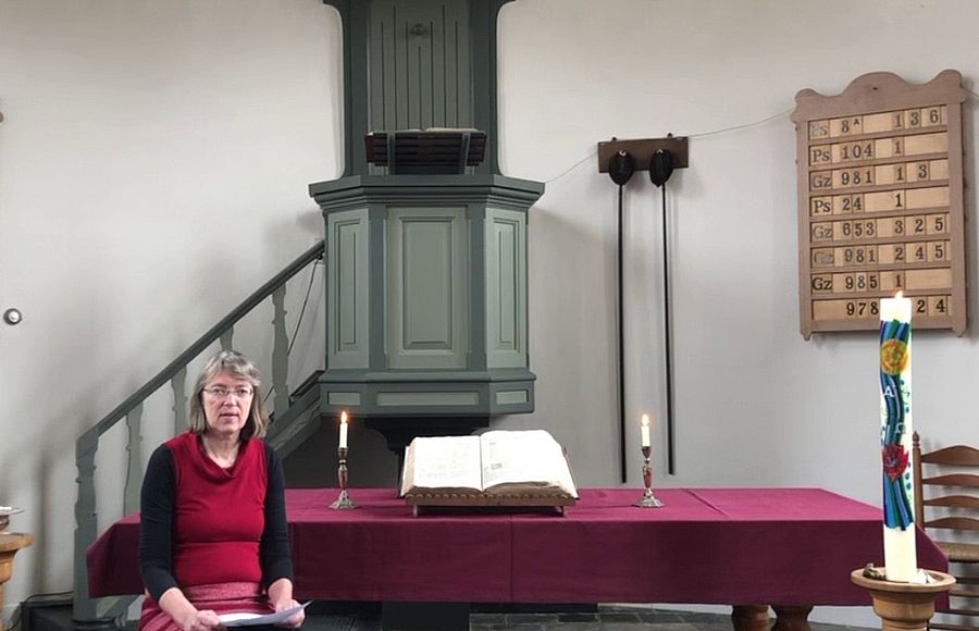 Het decor voor de thuisviering is vandaag de protestantse kerk van Urmond. Die kerk ligt in Oud-Urmond dichtbij de Maas op een verhoging, zodat de kerk bij hoog water niet overstroomde. De kerk is te bereiken via een hek en trappen naast de pastorie, maar ook gelijkvloers via de begraafplaats, ingang Burgemeester Strijkersstraat. Voor deze thuisviering verzorgde Ds. Jolien Leeffers de psalmlezing, een lied en een gebed. Cariene Groen-Zwart zorgde voor de muziek op orgel en piano.