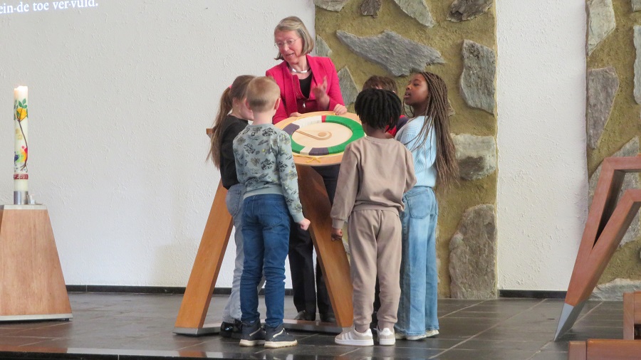 “Vandaag weer een nieuwe ervaring opgedaan in de kerk. Terwijl een gastvoorganger de kerkdienst leidde ben ik met de kinderen naar de kelder van de kerk gegaan voor een jeugduurtje waarin het ging over de tijd in de kerk aan de hand van de cirkel van het kerkelijk jaar. Wat een feest was dat! We mochten er na afloop ook nog iets van laten zien in de kerkzaal.”