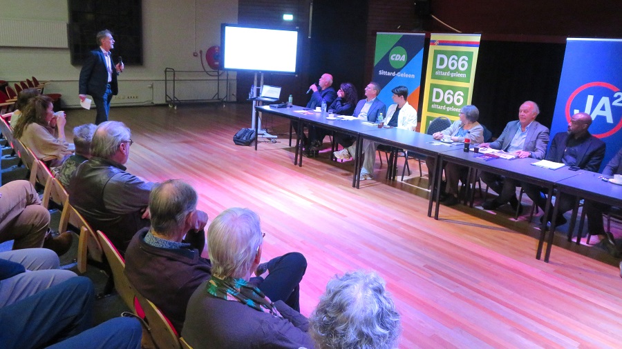 In de Hanenhof in Geleen werd woensdagavond 11 maart een politieke dialoogavond gehouden als voorbereidning op de gemeenteraadsverkiezingen van 18 maart. Dit werd georganiseerd door het Interreligieus Platform Sittard-Geleen, het Provinciaal Platform voor Diversiteit, het Leger des Heils, de Protestantse Gemeente Maas- en Beekdal en de Stichting Tijdig.